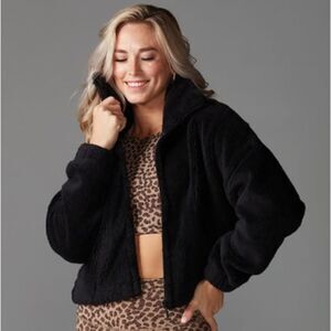 Women’s Tavi Noir black full zip Cozy fleece Sherpa jacket Bomber fit