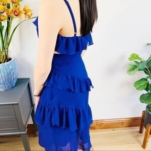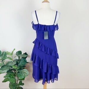 💋A.B.S. Ruffle mini blue purple dress size XS