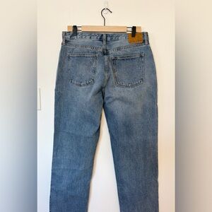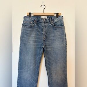 They're made with premium Italian organic cotton that just gets better with time. This version has a clean hem and comes in a medium-light indigo wash. "