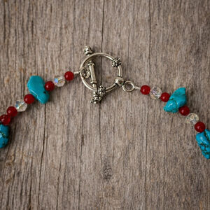 • Stones: Turquoise nuggets, red beads, crystal accents