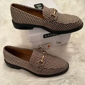 Bamboo Houndstooth Loafers - Brown/Black/Cream, Size 8