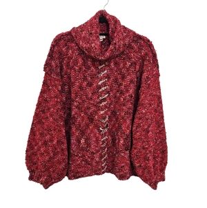 New POL Cozy Red Knit Turtleneck Sweater Size M Oversized Chunky Bohemian