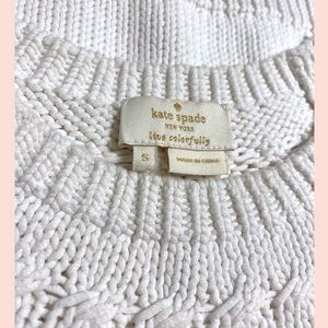 Beautiful, lightly loved Kate Spade open stitch short sleeve sweater. Size Small. Good condition, a couple of very small pulls and some very faint blue on the inside of the bottom hem (as shown).