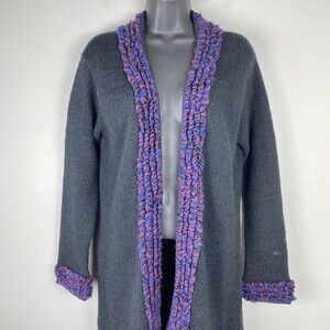 VTG Planet Earth Imports Sweater Long Knit Medium Black Hippie Boho Penny Lane