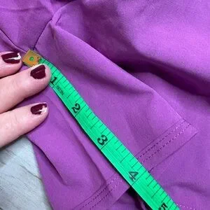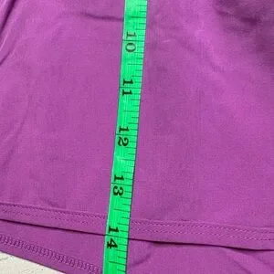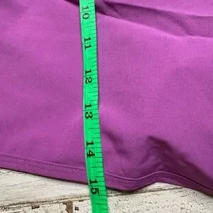 21 inches across at waist. 4 inch inseam. Elastic waist. 88% polyester, 12% elastane. Waistband 84% polyester, 16% elastane. Machine washable