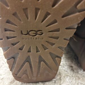 Durable brown sole with UGG branding. Ideal for traction and style.