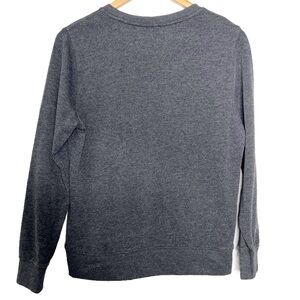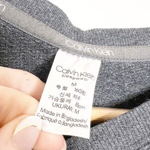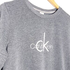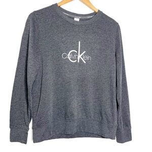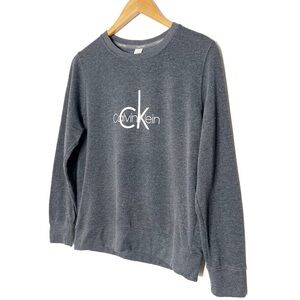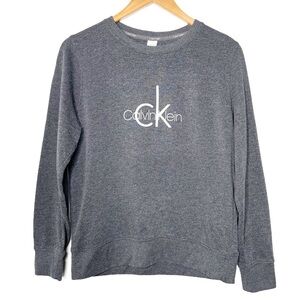 Calvin Klein women's charcoal gray crewneck sweatshirt. Iconic CK logo graphic printed on the front. Long sleeves and a comfortable fit make this a versatile layering piece. Size M. Style: QP27720. Made in Bangladesh.