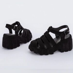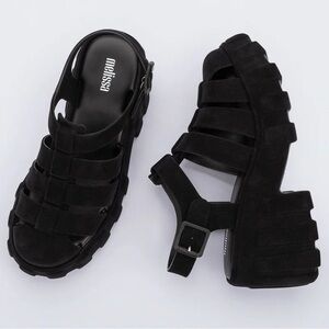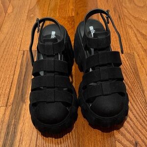 Melissa Black Velvet Jelly Shoe Megan Platform Sandals EUC Size 10 Sold Out