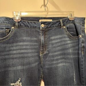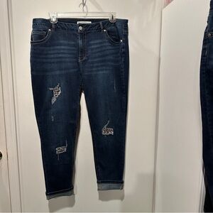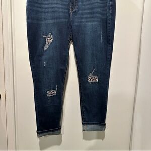 NEW Dark Blue Distressed 18W Women Jeans with leopard print 18W