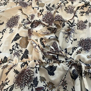 Sienna Sky. Cream colored rouched blouse. Earth tone floral. Short sleeves. Excellent condition. Size small.