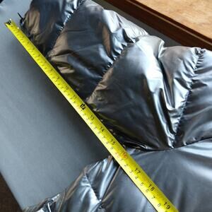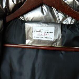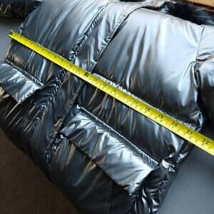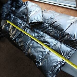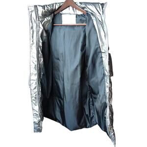 Miz 3006 Metallic Silver Puffer Coat L hooded vegan removable faux fur winter