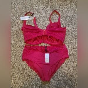 Elegant lace detailing. Soft and supportive. Ideal for everyday wear. The bra is a size 38J, and the underwear are size XXL. A beautiful set!