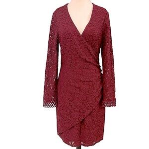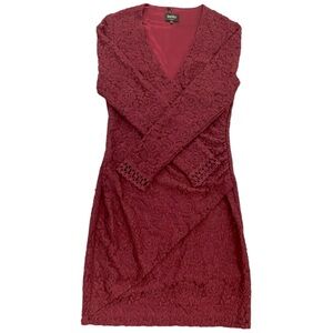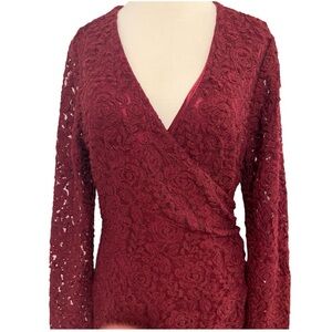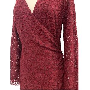 Laundry by Shelli Segal Ruched Lace Burgundy Long Sleeve Knee Length Size 12