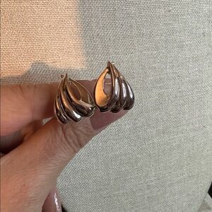 Elegant silver teardrop earrings with a layered design. Perfect for any occasion.