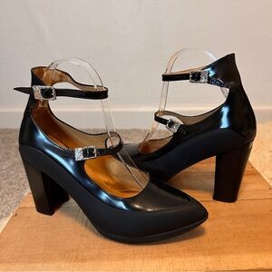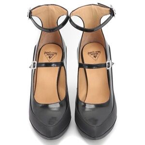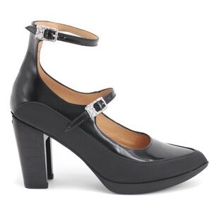 John Fluevog Unite Ghali black leather steampunk strappy block heel pumps 7.5