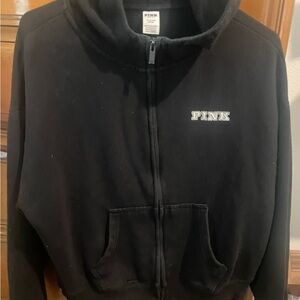 VS PINK. -BLACK HOODIE OVERSIZED SIZED XS will fit MEDIUM VARSITY CAMPUS
