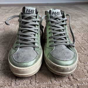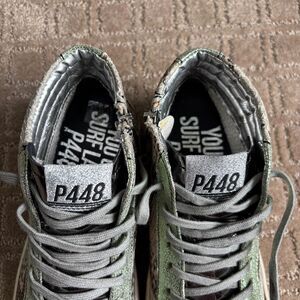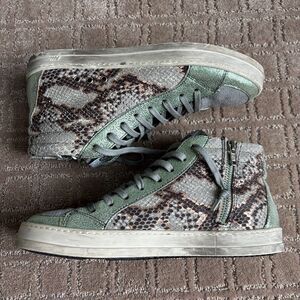 P448 Skate High Top Sneaker Womens 40 Snake Skin Metallic Glitter Side Zip *READ