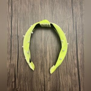 Bright yellow-green headband adorned with elegant pearls. Perfect for adding a pop of color to any outfit.