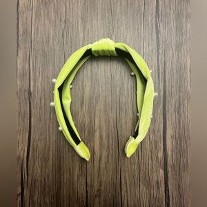 BP Florescent Yellow/Green Knotted Headband with Pearl Accents