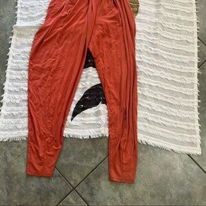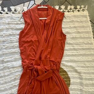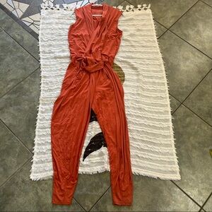 Les Lunes Stella Wrap Sleeveless Bamboo Belted Jumpsuit Orange Braun Sz L/XL EUC