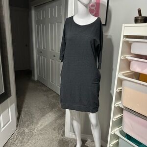 Stylish gray midi dress. Features a relaxed fit. Perfect for casual wear. Lululemon Sz 8 Dress! Side