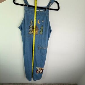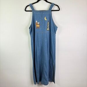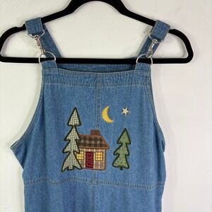 Vintage Christopher & Banks Denim Moose Cabin Moon Trees Overall Dress Size 8