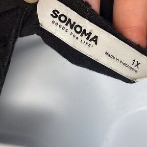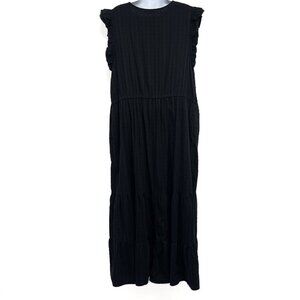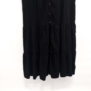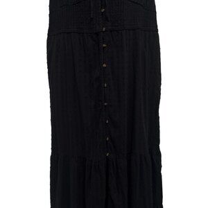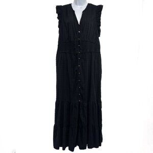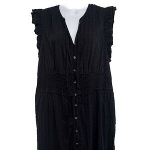 Sonoma Smocked Swiss Dot Ruffle Button Front Maxi Dress Black 1X Plus Size