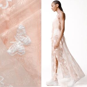 For Love & Lemons Beckett Sequin Butterfly Sheer Floral Lace Maci Dress