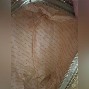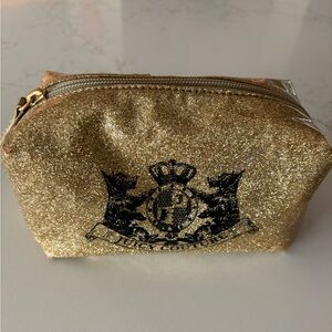 Stylish gold wristlet with bold 'Choose Juicy' print. Perfect for a night out.
