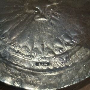 Stamped Alpaca. a gorgeous belt. Stylish silver concho belt with black leather strap. Perfect for adding a western flair to any outfit. 45.5” from end to end, conchos are 3.25” each, beautiful piece.
