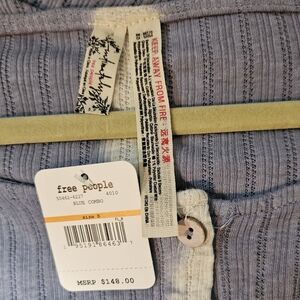 Free People Little Dream PJ Set LS Top High Rise Shorts Oversized Stretchy S NWT