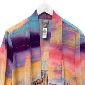 Chicos Chiffon Kimono Jacket XL (Chicos 3) Seaside Sunset Chiffon Artsy Top