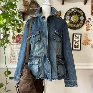 Vintage Old Navy Women's Size XL Denim Field Military Style Jacket Chic Utility Pockets