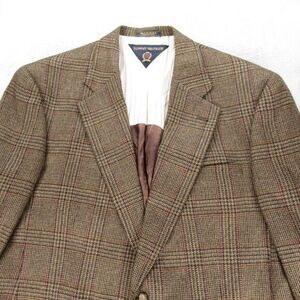 Vintage Tommy Hilfiger Blazer Mens 43R Brown Plaid 2 Button Single Vent USA Made