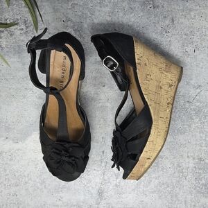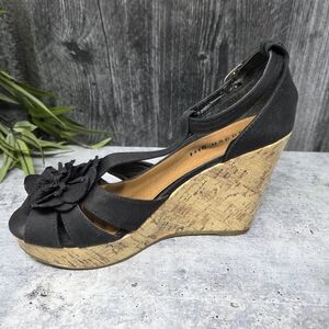 Madden Girl | Kolasso Black Cork Platform Wedge Sandals Flower Upper Size 8.5