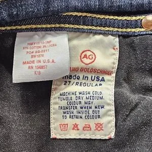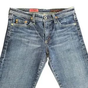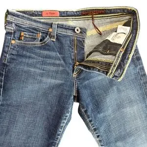 These stylish AG "The Rider" dark wash jeans have a comfortably lived-in look with a western flare. They have a cotton Lyra blend to give them durability and stretch for all day comfortable.