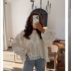 NWOT POL Lace Ruffle Cream Blouse