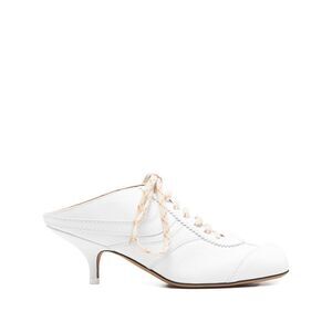 : white front lace-up fastening kitten heel mule style