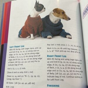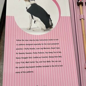 Cute set of 12 knitting patterns for the well-dressed dog. Includes patterns for toys as well as a carrier as well. Different sizes new with tags.