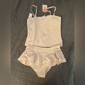 This two-piece stretch cami features adjustable straps for the perfect fit and a mini skort showcasing power mesh paneling at the sides for breathable structure. This essential pairing creates a foundation as adaptable as it is beautiful—ready to complement everything in our collection or stand alone as a tribute to the disciplined art form that has enchanted audiences for generations.