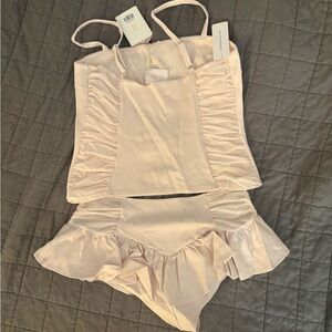En Pointe Dance Set in classic ballet shoe pink reimagines classical dancewear for everyday elegance.