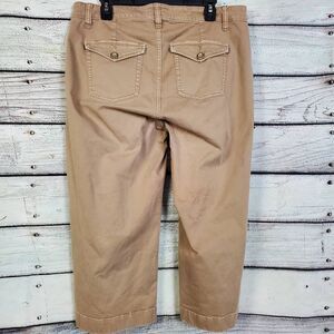 Stylish tan cropped pants. Comfortable fit. Perfect for casual wear.
