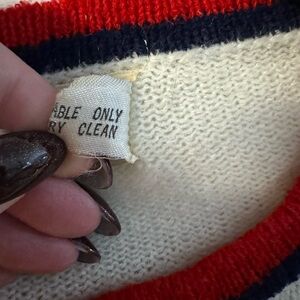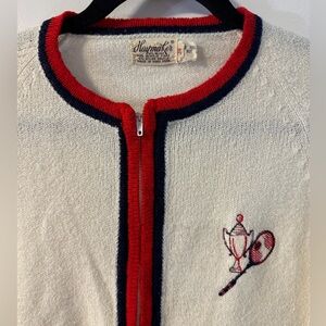 60s Tennis Trophy Preppy Vintage Cream Zip Up Cardigan Red & Blue Sportswear