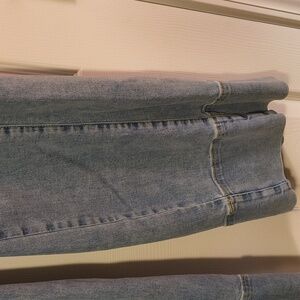 women's blue jeans, high waist, buttons and snaps on the front, belt loops, 2 pockets on the back, size 18L