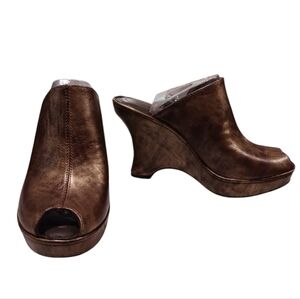 NWOT/NWOB* BORN Crown Metallic Gold Platform Wedge Mule Sandals, Women's 8 (39)