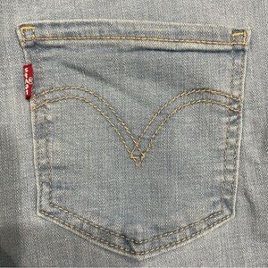 Chic Levi's mid length cuffed shorts in light blue denim. Perfect for everyday wear. Timeless style and comfort. Women’s size 25 in excellent condition