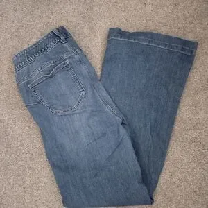 Stylish flare jeans in a classic blue. Comfortable and versatile for everyday wear.