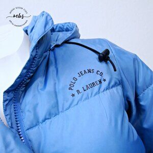 Ralph Lauren Down Feather Puffer Coat with Detachable Hoodie Blue Women XS