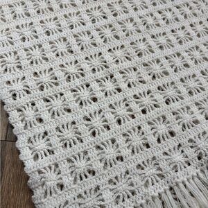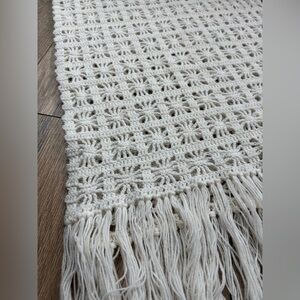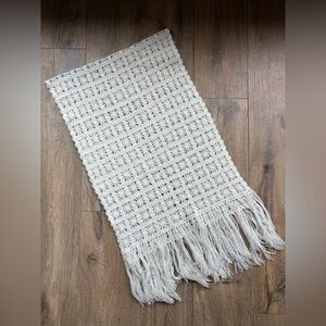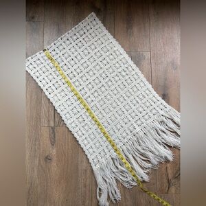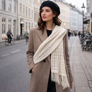 Hand Knit Wool Lace Pattern Scarf Wrap White Cream Wedding Cottagecore Hygge