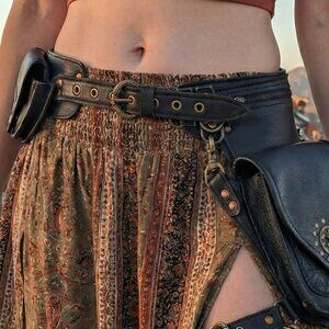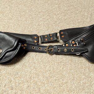Earth Nynja Handmade Leather Utility Pocket Belt & Thigh Bag - Black/Brass